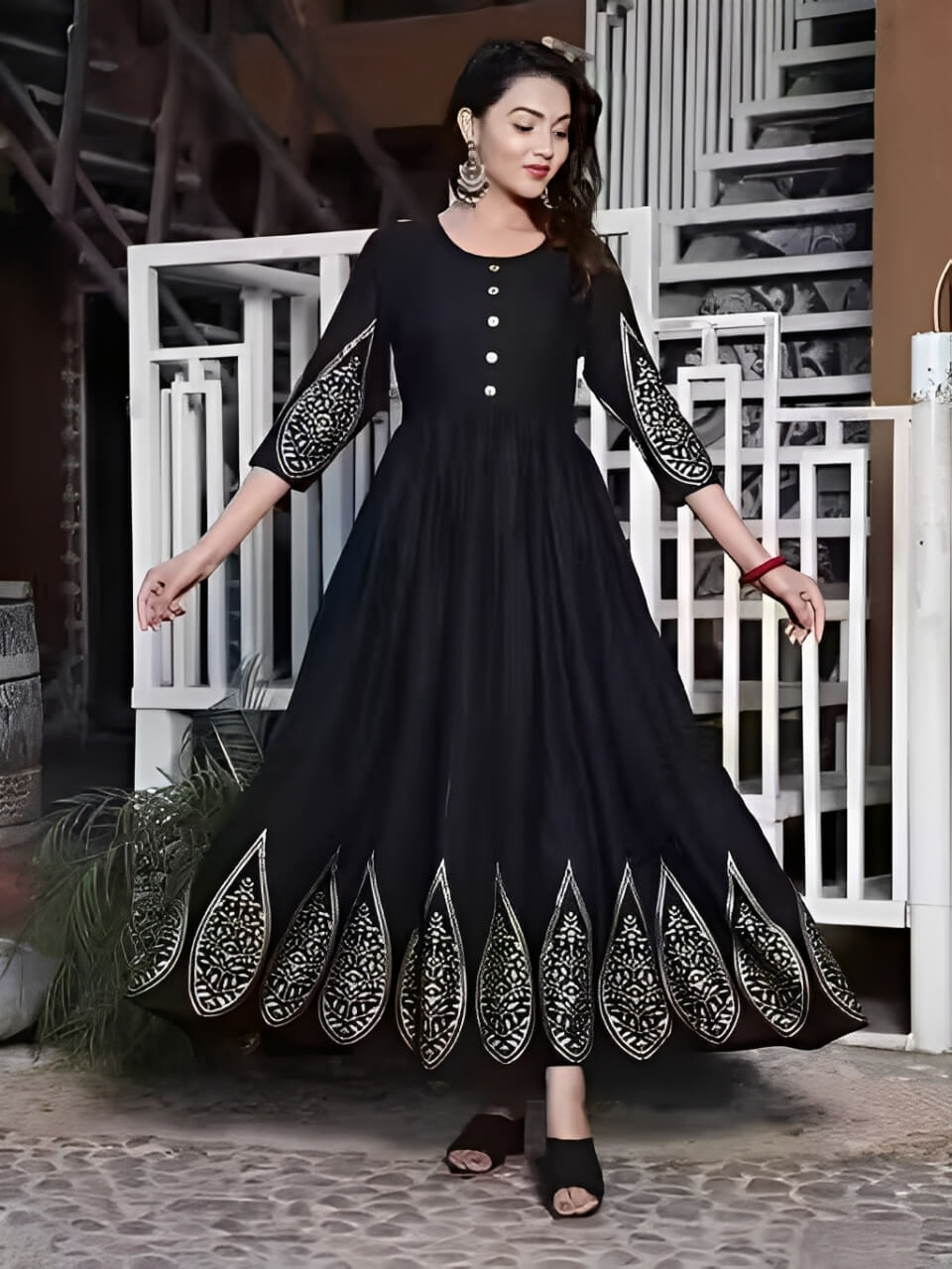 Black Anarkali Kurta – Flared Kurti with Elegant Gold Printed